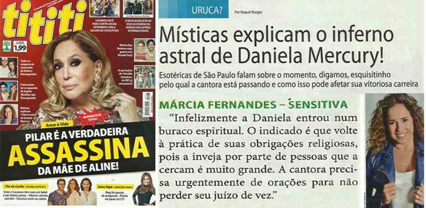 Escrevi uma matéria para a revista Tititi sobre o momento negativo que vive a cantora Daniela Mercury. Confiram!